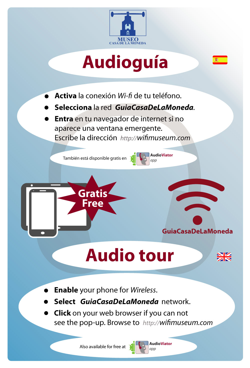 Audioguías individuales a través del sistema Wifimuseum con el smartphone del visitante. Recomendable traer sus propios auriculares. Idiomas disponibles: español, inglés y francés, y lengua de signos.